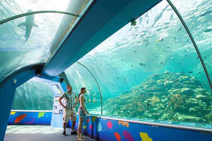 The world's largest coral reef aquarium. Walk through the tunnel and view the predators of the deep including sharks, trout, groper and trevally. See the small aqauria containing eels, sea snakes, sea horses and star fish or take the kids to the touch pools for a hands-on experience.